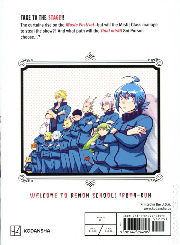 Volume 19 - 1st printing. Story and art by Osamu Nishi. Translated by Jacqueline Fung. Iruma Suzuki has always been eager to please, even at the cost of his well-being. Worst yet, he's the son of two selfish parents who end up selling him to a demon. Thanks to their totally irresponsible actions, Iruma has found himself living in the Netherworld, where he must live and attend school as the grandson of an older demon. Luckily, his new, doting grandfather is there to help, but Iruma will have to figure out how to blend in with his demonic classmates or risk getting eaten. All he needs to do is subjugate rival classmates, summon familiars, and do other typical demon things while never revealing that he's human… Piece of cake, right? Softcover, 5 1/2-in. x 7 1/2-in., 200 pages, B&W. Rated 13+ Cover price $12.95.