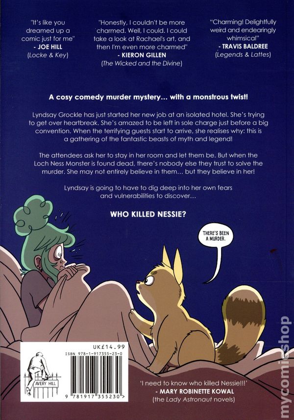 1st printing. Written by Paul Cornell. Art and cover by Rachael Smith. Its Lyndsay Grockles first day as the manager of the Lakeview Hotel. Her boss has handed her the keys and departed for vacation. And then the convention attendees start showing up, each more peculiar than the last. Lyndsays a confirmed skeptic - so shes surprised to be woken up in the middle of the night by her convention attendees, telling her that theres been a murder . . . of the Loch Ness Monster. The guests at the hotel are all cryptids from around the world, and now one of them is dead. Which means that one of them must be the murderer. And its up to Lyndsay to solve the case! Softcover, 6 1/2-in.x 9 1/2-in., 100 pages. full color. Mature Readers Cover price $19.99.