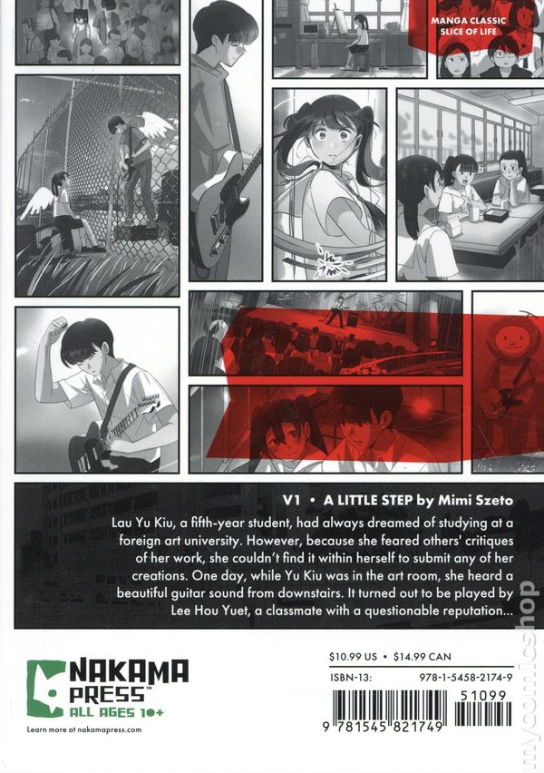 Volume 1 - 1st printing. Story and art by Mimi Szeto. Translated by Book Buddy Media. Yu-kiu Lau, a fifth-year student, had always dreamed of studying at a foreign art university. However, because she feared others' critiques of her work, she couldnt find it within herself to submit any of her creations. One day, while Yu-kiu was in the art room, she heard a beautiful guitar sound from downstairs. It turned out to be played by Ho-yuet Lee, a classmate with a questionable reputation... Softcover, 5-in. x 7-in., 168 pages, full color. Teen Cover price $10.99.