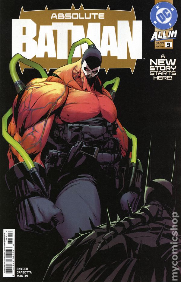 2nd Printing. Written by Scott Snyder. Art by Nick Dragotta. Cover by Nick Dragotta. AN ALL NEW ARK (M) STARTS HERE! The latest development in saving the derelict and despondent of our society is a facility known as Ark M--a fully operational institution that has played a rather sizeable part, on purpose or not, in the creation of evil. And it's active. So when Bruce tries infiltrate it and distill its secrets, a new villain from Gotham City arrives to deal with the problem...an old adversary of Alfred's...a man known only as Bane. 28 pages, full color. Rated T+ Cover price $4.99.