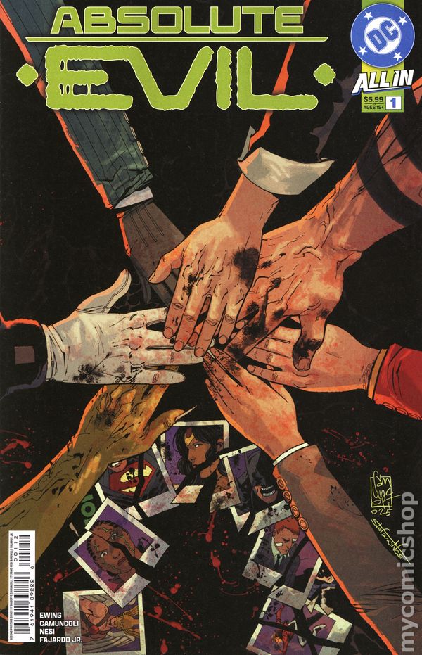 2nd Printing. Written by Al Ewing. Art by Giuseppe Camuncoli, Stefano Nesi. Cover by Giuseppe Camuncoli, Stefano Nesi. IT'S THE ONE-YEAR ANNIVERSARY OF THE ABSOLUTE UNIVERSE--AND ITS VILLAINS STAND UNITED! Without heroes...without protection...without restraint...there is only ABSOLUTE EVIL. The emergence of superheroes has caught the attention of the world...and its certainly caught the attention of the people who run it. Ras al Ghul, Veronica Cale, Elenore Thawne, Hector Hammond, and the mysterious Joker have worked at cross-purposes until now, but this growing threat requires new ways of thinking...and new partnerships. An insidious betrayal from within their ranks is imminent, and if they dont take action, theyll lose control of a planet that was built to be their playground! Superstars Al Ewing and Giuseppe Camuncoli join forces to kickstart the next era of Absolute Universe stories...with several shocking new character reveals, and one big unmissable twist! 30 pages, full color, rated 15+ Cover price $5.99.