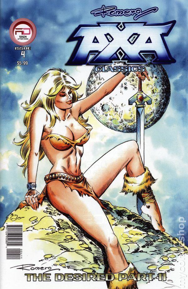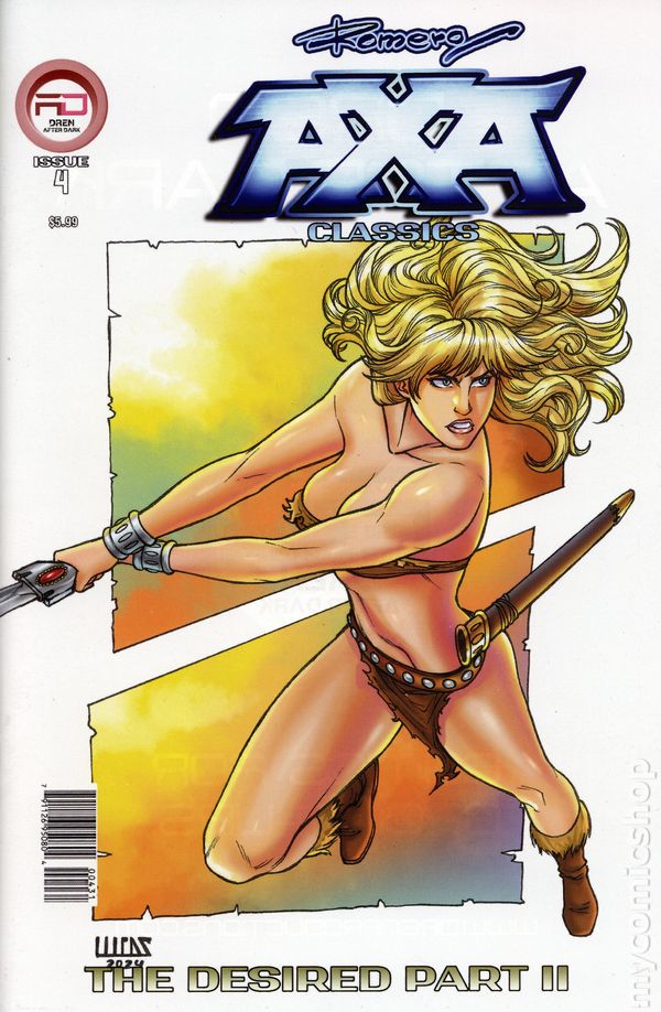 Written by DONNE AVENELL. Art by Romero. Cover by Romero. Axa, a spirited woman in the year 2080, can no longer endure the oppressive order of the Domed City, a utopia built to protect the remnants of humanity after the Great Contamination. Driven by a thirst for freedom, she escapes to the wild, uncharted territories beyond. As a nomadic adventurer in the devastated outside world, Axa encounters a diverse array of survivors and challenges, forging a new, exhilarating life far from the confines of civilization. 36 pages, black and white, not rated. Cover price $5.99.