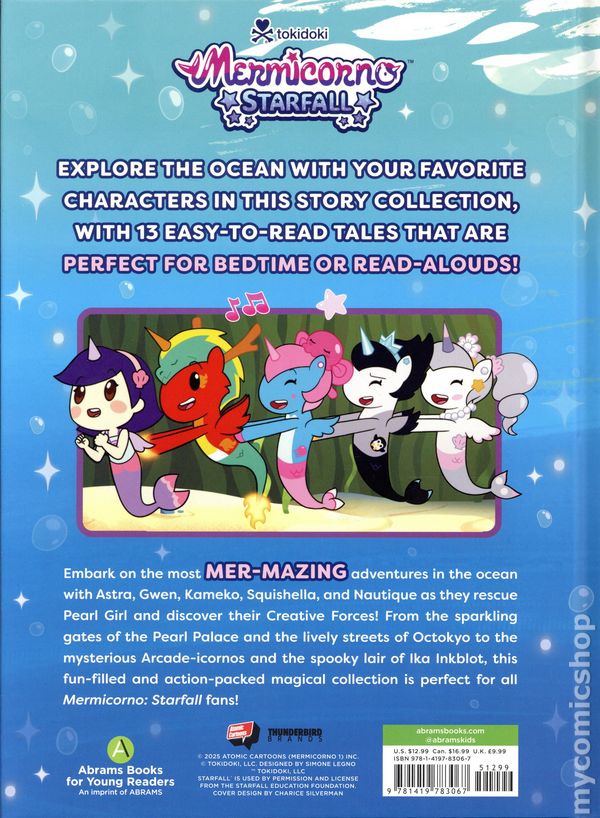 1st printing. Cover by Brann Garvey. A charming collection of short stories set in the world of tokidokis Mermicorno: Starfall and designed to be read in five minutes or less! Relive the most exciting adventures, memorable moments, and heartwarming friendships of the most Mer-mazing crew in the ocean with Astra, Gwen, Kameko, Squishella, and Nautique!A collectible volume of short stories set in the world of tokidokis Mermicorno: Starfall and designed to be read in five minutes or less! Based on the Max and show, 5-Minute Mermicorno: Starfall Stories gives readers the opportunity to meet their favorite Mermicorno characters and revisit some of the most magical episodes in the show. Appearing in print for the first time—and in a gifty storybook package—each of the 13 stories retells a beloved episode, making it perfect for read-alouds or when its time to settle down for bed. Hardcover, 176 pages, full color. All Ages Cover price $12.99.