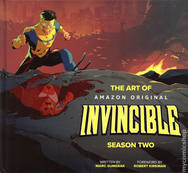 Volume 2 - 1st printing. "Season Two!" Text by Marc Sumerak and Robert Kirkman. Art by Cory Walker, Dou Hong, and Nate Bellegarde. Cover by Cory Walker and Peter Rubin. This official behind-the-scenes companion to Prime Videos second season of the hit animated series, INVINCIBLE, featuring a foreword from co-creator ROBERT KIRKMAN! THE ART OF INVINCIBLE SEASON TWO features exclusive character, background, and vehicle designs along with key art and more! This volume takes fans behind the scenes and includes interviews with key creatives, including** INVINCIBLE **creators ROBERT KIRKMAN and CORY WALKER. Hardcover, 11 1/2-in. x 10 1/2-in., 232 pages, full color. Cover price $39.99.
