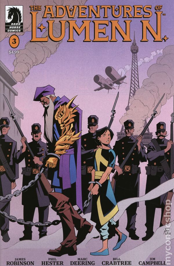 (W) James Robinson (A) Phil Hester; Marc Deering (CA) Phil Hester (C) Bill Crabtree Lumen has now fully embraced her destiny as the granddaughter of Captain Nemo as well as all the adventure that comes with it. But this new life still has more surprises in store, including Lumen’s first encounter with Nemo’s legendary submarine the Nautilus along with its storied crew. But with Robur the Conqueror revealed as the villain behind everything, can the Nautilus out-run Robur’s own deadly flying vessel the Albatross as they both race to Paris, with Lumen and Nemo intent on saving the city while Robur plans for its destruction.• A brand-new adventure series by James Robinson, Phil Hester, Marc Deering, and Bill Crabtree! • Four-issue series. 32 pages, full color, rated teen. Cover price $4.99.