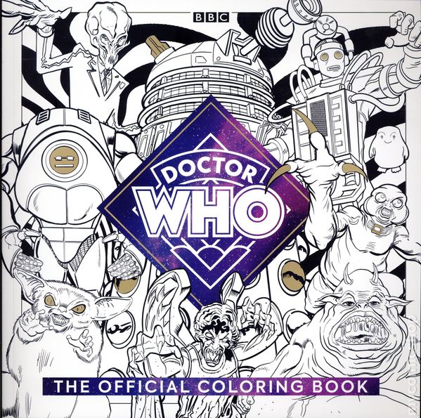 1st printing. Art and cover by Mike Collins. Step into the TARDIS and unleash your creativity as you color in your favorite scenes and characters from every era of Doctor Who. Whether you're a seasoned Time Lord or a new companion, The Official Doctor Who Coloring Book will transport you to new worlds and dimensions as you bring your favorite Doctor Who characters and moments to life. With stunning illustrations of the Doctor from every era, including David Tennant as the Tenth Doctor, Matt Smith as the Eleventh Doctor, and Ncuti Gatwa as the Fifteenth Doctor, along with iconic foes, monsters, aliens, and epic scenes, this book is a fun and relaxing way to engage with one of the worlds most popular shows. Featuring 45 original illustrations on thick, high-quality paper, The Official Doctor Who Coloring Book invites you to embark on a colorful journey through time and space—but be warned, it's bigger on the inside! Softcover, 10-in. x 10-in., 96 pages, B&W. Cover price $17.99.