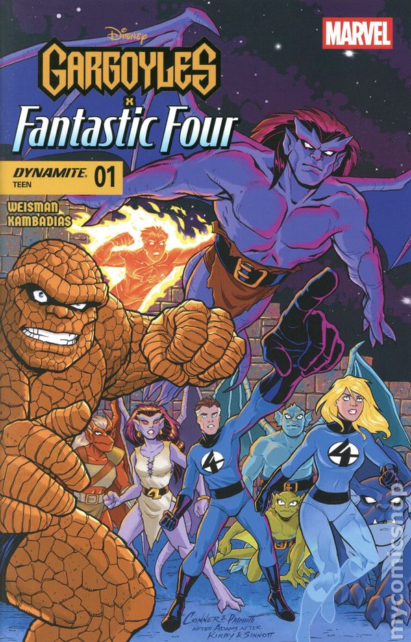 (W) Greg Weisman (A) George Kambadais (CA) Amanda Conner DISNEYS STONE GUARDIANS MEET MARVELS FIRST FAMILY! When the Manhattan Clan are invited on a tour of the world-famous Baxter Building — the high-tech home of the Fantastic Four — things quickly go from impressive to destructive when Coldsteel joins forces with the Dragon Man to unleash the terror that is Annihilus — trapping Franklin, Valeria, and Gnash in the Negative Zone in the process! Now, both of these heroic extended families — enchanted stone and super-human alike — must team up in an all-out effort to save their children, their city, and their whole world from destruction! Written by Gargoyles creator GREG WEISMAN and illustrated by celebrated artist GEORGE KAMBADAIS, the 40-page special features non-stop action and adventure, with cosmically iconic covers provided by LUCIO PARRILLO, DECLAN SHALVEY, AMANDA CONNER, MARK BAGLEY, and NICOLETTA BALDARI! 40 pages, full color, rated teen. Cover price $5.99.