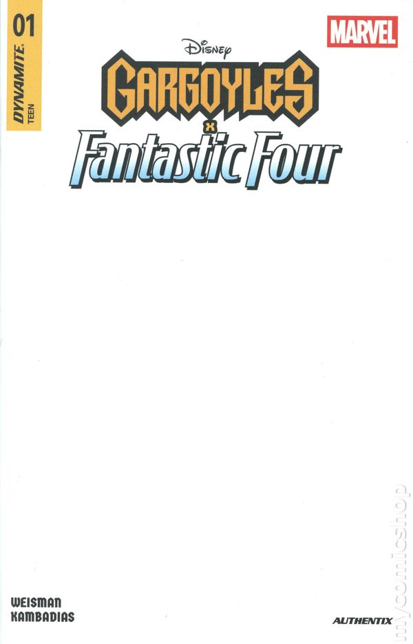 $6 Gargoyles x Fantastic Four #1 Blank Authentix Variant Cover F $10 GARGOYLES X FANTASTIC FOUR #1 CVR F BLANK AUTHENTIX VAR DYNAMITE Comic Book Clicking on the links to the eBay listings shown above and then making a purchase may result in MyComicShop earning a commission from the eBay Partner Network.