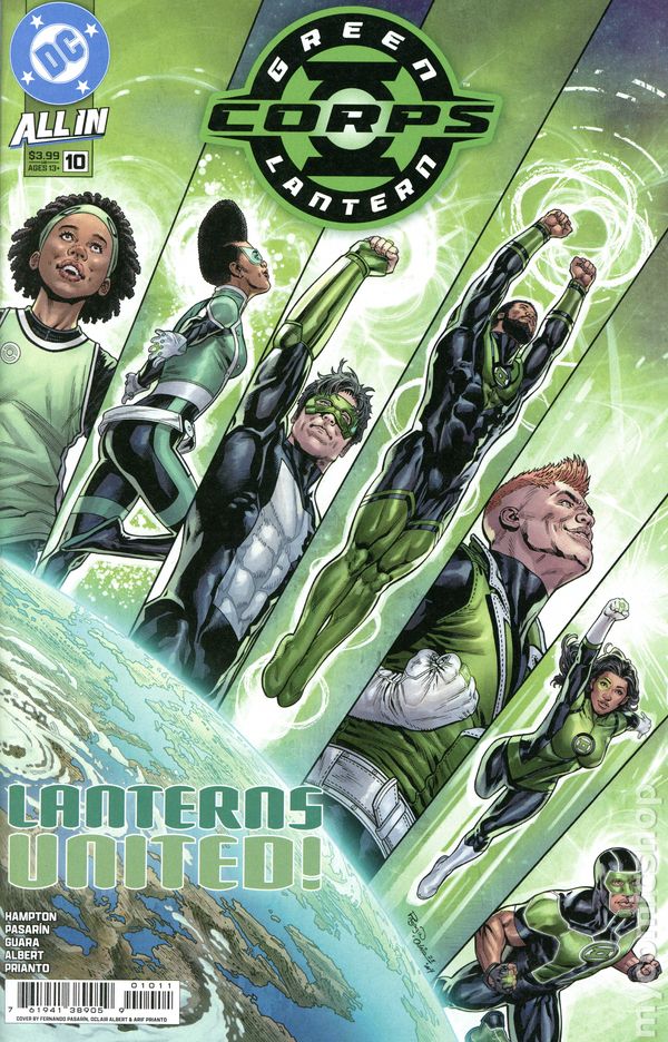 (W) Morgan Hampton (A) Fernando Pasarin, Oclair Albert (CA) Fernando Pasarin, Oclair Albert EVERYONE'S ON OA! In the aftermath of the Starbreaker Supremacy, Oa shines brighter than ever as home to the entire emotional spectrum! But the shared planet--a patchwork of Lantern territories--is rife with conflict as everyone adjusts to the new status quo. The newest Lanterns--including Keli, Vexaru, Aya, and Narf--go through Kilowogs Corps Academy, while veteran teams search for the escaped sciencell prisoners. Expect the shocking return of a few legendary faces... 32 pages, full color, rated 13+. Cover price $3.99.