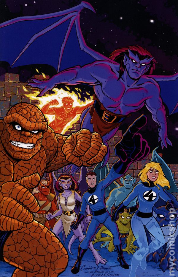 Limited 1 for 25 Retailer Incentive Variant Cover.(W) Greg Weisman (A) George Kambadais (CA) Amanda Conner DISNEYS STONE GUARDIANS MEET MARVELS FIRST FAMILY! When the Manhattan Clan are invited on a tour of the world-famous Baxter Building — the high-tech home of the Fantastic Four — things quickly go from impressive to destructive when Coldsteel joins forces with the Dragon Man to unleash the terror that is Annihilus — trapping Franklin, Valeria, and Gnash in the Negative Zone in the process! Now, both of these heroic extended families — enchanted stone and super-human alike — must team up in an all-out effort to save their children, their city, and their whole world from destruction! 40 pages, full color, rated teen. Cover price $5.99.