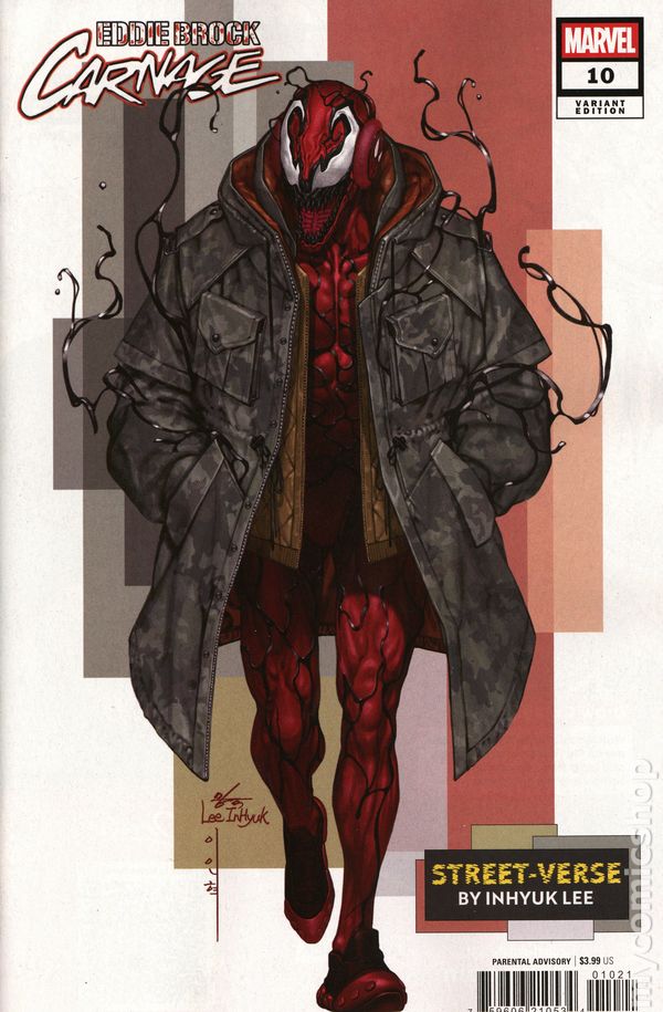 (W) Charles Soule (A) Jesus Saiz (CA) Inhyuk Lee THE DEATH OF CARNAGE?! Eddie and Carnage's investigation has hardly gone as planned, leaving them at the whims of its mysterious proprietor - a symbiote host Eddie remembers from his days as the King in Black. She has the key to killing Carnage, but the price of ridding the world of him once and for all is costly. Will Eddie be willing to pay it, or will the symbiote live to kill another day? 32 pages, full color, RATED PARENTAL ADVISORY. Cover price $3.99.