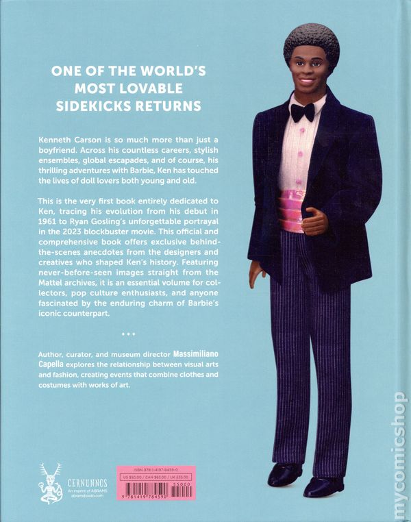 1st printing. One of the worlds most lovable sidekicks returns. Kenneth Carson is so much more than just a boyfriend. He has always been a mirror of his time––sometimes innovative, sometimes traditional, sometimes a feminist icon, and often a symbol of gay culture. Through every reinvention, he has reflected changing ideals, aesthetics, and social movements. This is the very first book dedicated entirely to Ken, tracing his evolution from his debut in 1961 to Ryan Goslings unforgettable portrayal in the 2023 blockbuster movie. This official and comprehensive book offers exclusive behind-the-scenes anecdotes from the designers and creatives who shaped Kens history. Featuring never-before-seen images straight from the Mattel archives, it is an essential volume for collectors, pop culture enthusiasts, and anyone fascinated by the enduring charm of Barbies iconic counterpart. Hardcover, 10-in. x 13-in., 240 pages, full color. Teen+ Cover price $50.00.