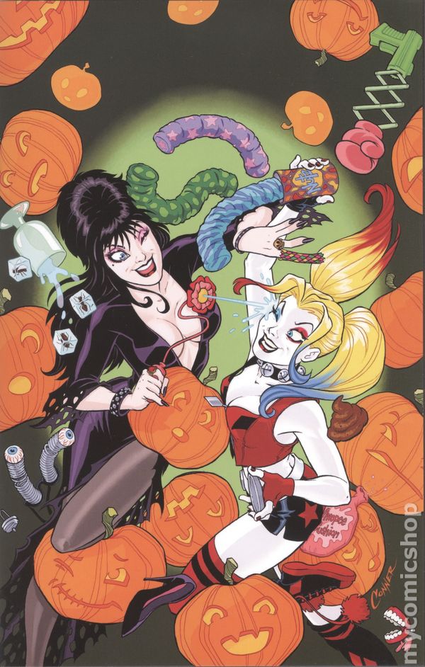 View scans(W) Amanda Conner, Jimmy Palmiotti (A) Amanda Conner, Juan Samu (CA) Amanda Conner THE MISTRESS OF THE DARK MEETS DADDY'S LITTLE MONSTER! What happens when the Clown Princess of Crime gets bored? Shenanigans, hijinks, grievous bodily harm… the possibilities are endless! Now add in a certain macabre-minded TV host who seems to attract trouble like crypts attract vampires, and the stage is set for the greatest team-up since Frankenstein met his Bride! With her beloved show on the chopping block following a corporate takeover, Elvira needs to come up with a plan to get things back in the black - and her new friend Harley Quinn has an idea that's just crazy enough to work! Together, they're going to throw the greatest Halloween party Brooklyn has ever seen - whether the borough likes it or not! Written by AMANDA CONNER and JIMMY PALMIOTTI - the world-famous tag-team of all things Harley Quinn - this crossover event for the ages from Dynamite and DC Comics also showcases Amanda's fan-favorite artistic chops, with each issue featuring two (count 'em, two) Conner covers. And that's not all (certainly not!) - she's also joining interior artist (and Elvira favorite) JUAN SAMU to provide selected story pages for the series! But wait, there's more! This premier issue also includes darkly captivating covers from JOSEPH MICHAEL LINSNER, CHAD HARDIN, BEN CALDWELL, and best-selling Mark Spears Monsters creator MARK SPEARS! Cover price $50.00.