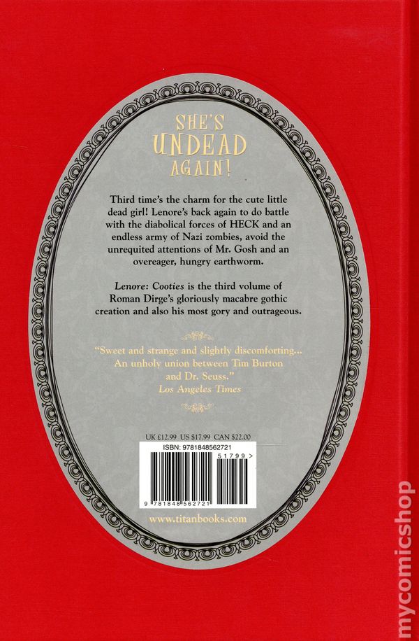 Set Includes 3 Volumes (with Slipcase) - Printings May Vary. Story and art by Roman Dirge. FROM THE TWISTED MOND OF ROMAN DIRGE. COLLECTING HARD-TO-FIND EARLY CLASSICS! The one, the only, LENORE: THE CUTE LITTLE DEAD GIRL is back from the grave with this a hardback slipcase collection of her first three books. Get ready for a triple dose of maniacal fiendish fun, gruesome games, and gloriously macabre and horrible hi-jinx as Lenore battles diabolical armies of Nazi zombies, hungry earthworms, gnomes, Tooth Haires and the thing from the poopy chair. Featuring short stories and bizarre back-up strips, like The Crooked Man, The Possum King, The Boy with his Heart in a Box. Includes - Noogies, Wedgies & Cooties. Hardcover (3 Volumes with Slipcase), 336 pages (Total), full color. Teen+ Cover price $59.99.