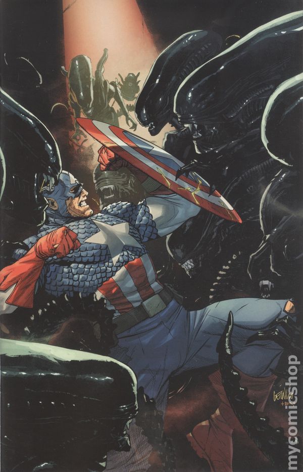 (W) Frank Tieri (A) Stefano Raffaele (CA) Inhyuk Lee THE ZENOMORPH OF TRUTH? It's World War II and Hydra seeks a new weapon to defeat the Allies and win the war. To that end, the Red Skull has sent Baron Strucker on an expedition to the Himalayas to find the fabled city of Atilan. But instead of finding the Inhumans, Strucker uncovers something much more deadly. Much more... Alien. Can Captain America and the Howling Commandoes stop the Skull and his newfound xenomorph weapons... or will the First Avenger learn that in war-torn Europe... no one can hear you scream? RATED PARENTAL ADVISORY. 32 pages, full color, rated parental advisory. Cover price $5.99.