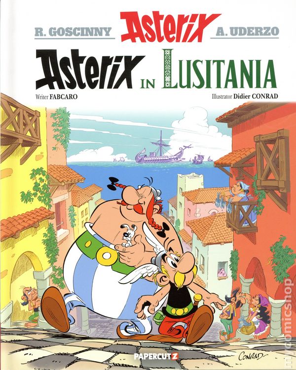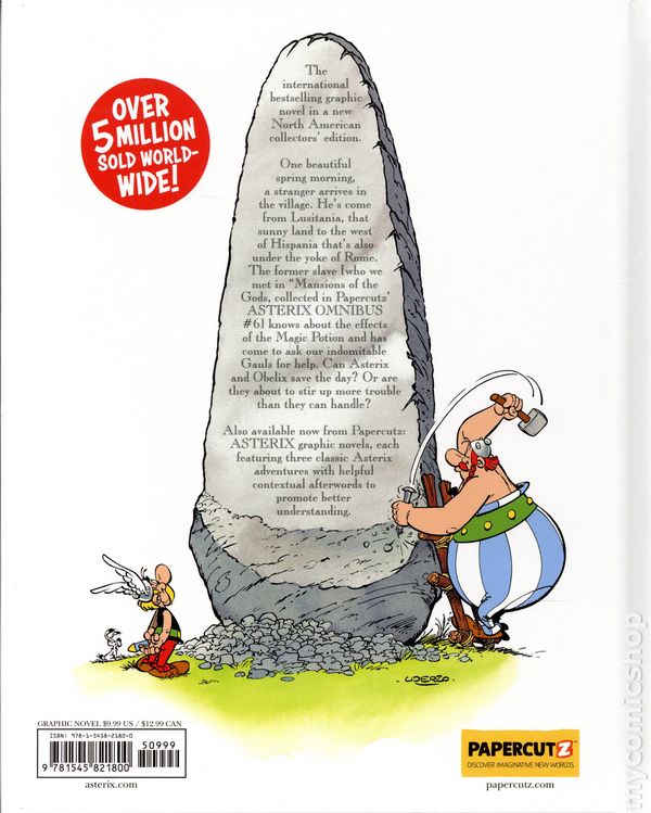 1st printing. Written by Fabcaro. Art and cover by Didier Conrad. One beautiful spring morning, a stranger arrives in the village. Hes come from Lusitania, that sunny land to the west of Hispania thats also under the yoke of Rome. This former slave, who we met in Mansions of the Gods [collected in Papercutz ASTERIX Omnibus #6], knows about the effects of the Magic Potion and has come to ask our indomitable Gauls for help. A new adventure for Asterix and Obelix is about to begin! Hardcover, 7 1/2-in.x 9 1/2-in., 48 pages, full color. Cover price $9.99.