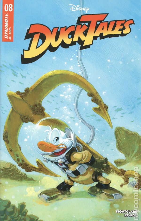 Limited 1 for 10 Retailer Incentive Variant Cover.(W) Brandon Montclare (A) Tommaso Ronda (CA) Alan Quah DUCKS IN SPACE! Fenton Crackshell - a.k.a. Gizmoduck - has to get out of town. Like, really out of town. After a mechanical miscue in his Gizmoduck gear leads to the destruction of a Duckburg bank, Uncle Scrooge reassigns him to the McDuck Moon Mines, where he can use his technical savvy to count rocks - and stay out of trouble! But when Scrooge and the boys pay a visit to his lunar holdings via rocket ship, the usually tranquil Moon is suddenly assaulted by alien invaders. These unfriendly space pirates pack a lot of firepower, which means that for once, Uncle Scrooge might be grateful for Gizmoduck's super-heroics - that is, if they all manage to survive! Ground controllers BRANDON MONTCLARE and TOMMASO RONDA launch their avian adventurers to new heights in DuckTales #8 - featuring out-of-this-world covers from RONDA, IVAN BIGARELLA, FRANCESCO TOMASELLI, CARLO LAURO, and ALAN QUAH! 32 pages, full color, all ages. Cover price $4.99.