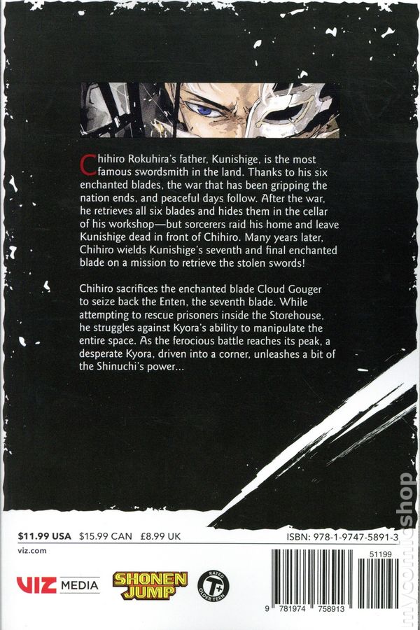Volume 5 - 1st printing. Story and art by Takeru Hokazono. Translated by Camellia Nieh. Chihiro sacrifices the enchanted blade Cloud Gouger to seize back the Enten, the seventh blade. While attempting to rescue prisoners inside the Storehouse, he struggles against Kyora's ability to manipulate the entire space. As the ferocious battle reaches its peak, a desperate Kyora, driven into a corner, unleashes a bit of the Shinuchi's power... Softcover, 5-in. x 7-in.,192 pages, B&W. Older Teen Cover price $11.99.