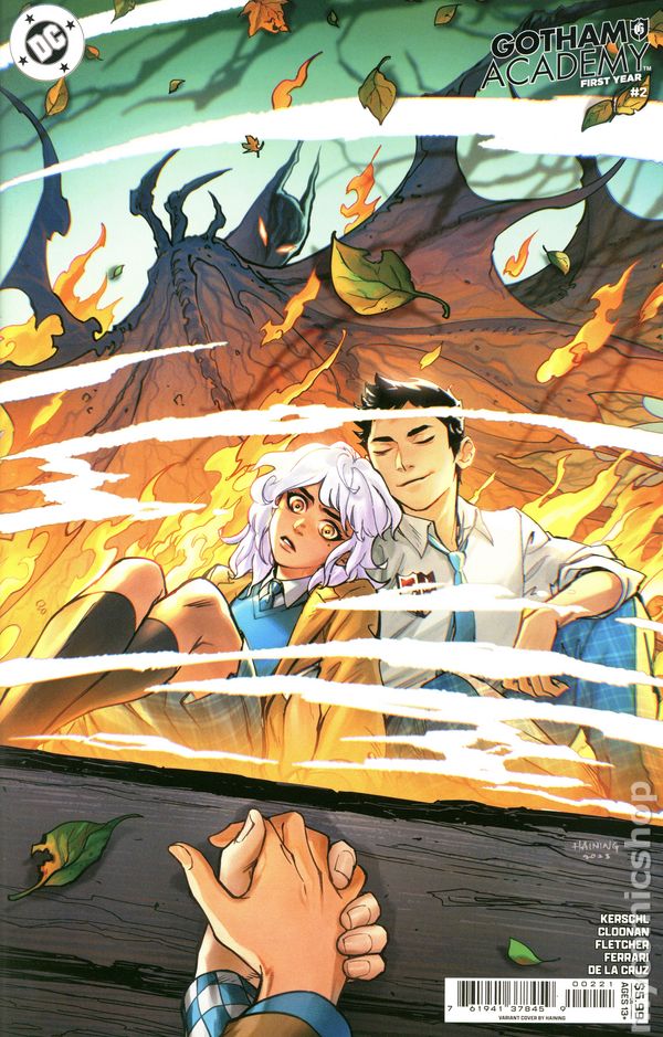 (W) Brenden Fletcher, Karl Kerschl, Becky Cloonan (A) Marco Ferrari (CA) Karl Kerschl SCHOOL IS ABOUT MAKING FRIENDS…AND ENEMIES! Life at school is both terrible (pissing off the football team is never a good idea) and wonderful (almost kissing a cute boy is almost perfect), but Olive Silverlock will never be truly happy until she knows her mom is safe. Visiting her in Arkham is supposed to be reassuring! But when Olive meets the man behind the Scarecrows mask, will her serenity be torn away, too? 32 pages, full color, rated 13+. Cover price $4.99.