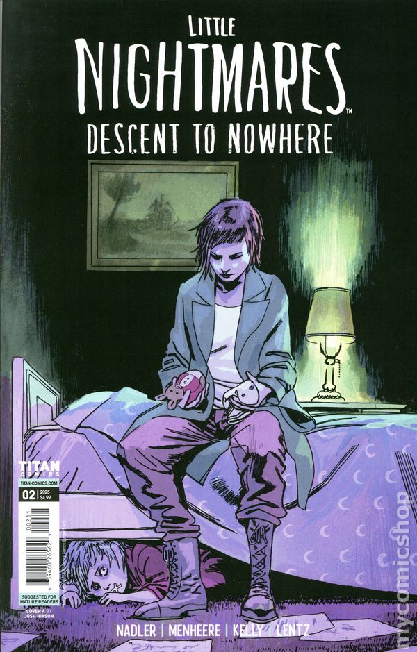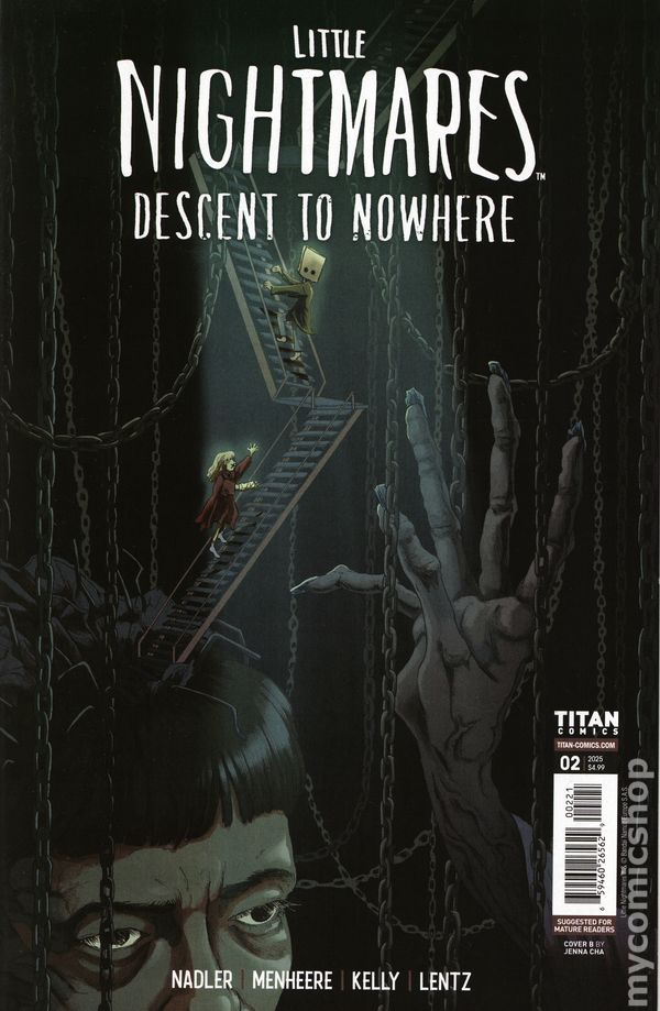 (W) Lonnie Nadler (A) Dennis Menheere, Dearbhla Kelly (CA) Jenna Cha "Based on the best-selling horror game, Little Nightmares! New comic series launching at the same time as Little Nightmares III game! Against her better judgement, former detective MYRA WAN begins to poke at the shadows which linger in every corner of the Counties, searching for the mysterious missing HUSH. In the COUNTIES PSYCHIATRIC INSTITUTE – the last place the little girl was ever seen – there are more questions than answers. In the NOWHERE, Hush falls deeper into the dungeon without MONO to guide her. But she must survive more than just the JAILER, as something itches just beneath her skin, pulling Hush into more and more danger…. " 32 pages, full color, rated mature. Cover price $4.99.