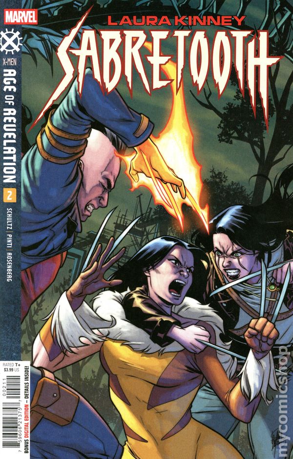 Limited 1 for 25 Retailer Incentive Variant Cover. (W) Erica Schultz (A) Valentina Pinti (CA) Nimit Malavia SABRETOOTH HUNTS HER FAMILY! X YEARS LATER, SABRETOOTH must hunt her sister GABBY and half brother AKIHIRO as they flee the REVELATION TERRITORIES! But who travels with them, and what threat do they hold over the fate of Revelation? PLUS: The return of a landmark X-VILLAIN! Cover price $3.99.