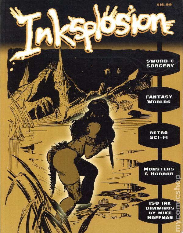 Volume 1 - 1st printing. Art and cover by Mike Hoffman. 150 outstanding Ink Artworks by Mike Hoffman, featuring subjects like Sword & Sorcery, Fantasy, Retro Science Fiction, Monsters, Horror and more! Master-Drawer Mike Inksplodes jutty jet-blackness all over the vorpal coolection of sharpie Hoffsterpieces! Softcover, 8 1/2-in. x 11-in., 152 pages, B&W. Mature Readers Cover price $16.99.