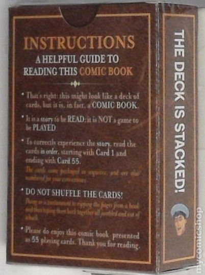 (W) W. Maxwell Prince (A/CA) Martin Morazzo. Continuing their exploration into just what a comic can BE, the award-nominated team responsible for ICE CREAM MAN—one of the most enduring comics of the last decade—have pushed the envelope so far it's fallen right off the table. Presented as a beautiful, custom-designed deck of cards (featuring custom backs and a custom box, too!), The Mortal Coil Shuffle is a one-time-only, one-of-a-kind ICE CREAM MAN story...told via 55 playing cards, rather than within the periodical pages of a traditional floppy comic book. All art is, as ever, by Ice Cream Man stalwarts Morazzo, Chris OHalloran, and Good Old Neon. Some cards will tell part of the story; while other cards cast inscrutable spells on unwitting characters; and some must be joined with other cards to form a complete piece of art (the card decks version of a spread.). It's a first-of-its-kind comic experiment, and also, perhaps, the last. The Mortal Coil Shuffle will be printed once and once only—no second printings, no new runs, and never collected in a trade of any kind. It will exist—and then, like magic—it wont. So get ready to Go Fish, Draw Four, Declare War, and (probably) Fold Your Hand in this exciting comic book delivery style—told, of course, in the creepy, strange voice readers have come to expect from Ice Cream Man yarns. Good luck, and watch out for those Wild Cards! Cover price $9.99.