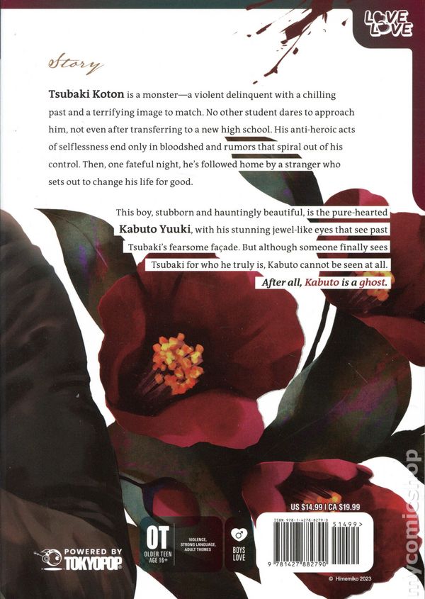 Volume 1 - 1st printing. Story and art by Himemiko. Translated by Massiel Gutierrez. A monster who wants to be feared. A ghost who wants to be seen. A romance that will haunt your heart. A 2025 Chill Chill Award winner! Tsubaki Koton is a monster — a violent delinquent with a chilling past and a terrifying image to match. No other student dares to approach him, not even now hes transferred to a new high school. His anti-heroic acts of selflessness end only in bloodshed and rumors that spiral out of control. But one night, hes followed home by a stranger who sets out to change his life for good. This boy, stubborn and hauntingly beautiful, is the pure-hearted Kabuto Yuuki, with his stunning jewel-like eyes that see past Tsubakis fearsome charade. But although someone finally sees Tsubaki for who he truly is, Kabuto cannot be seen at all. After all, Kabuto is a ghost. Softcover, 5 3/4-in. x 8-in., 196 pages, B&W. Older Teen (16+) NOTE: This volume was impossibly adorable. There was no way, honestly, to dislike his story about a monster with a heart of gold and the ghost who pushes him to interact more with the people around him, who gets a little jealous of him when he does. […] Super cute, go ahead and read it. — Erica Friedman, Anime News Network Cover price $14.99.