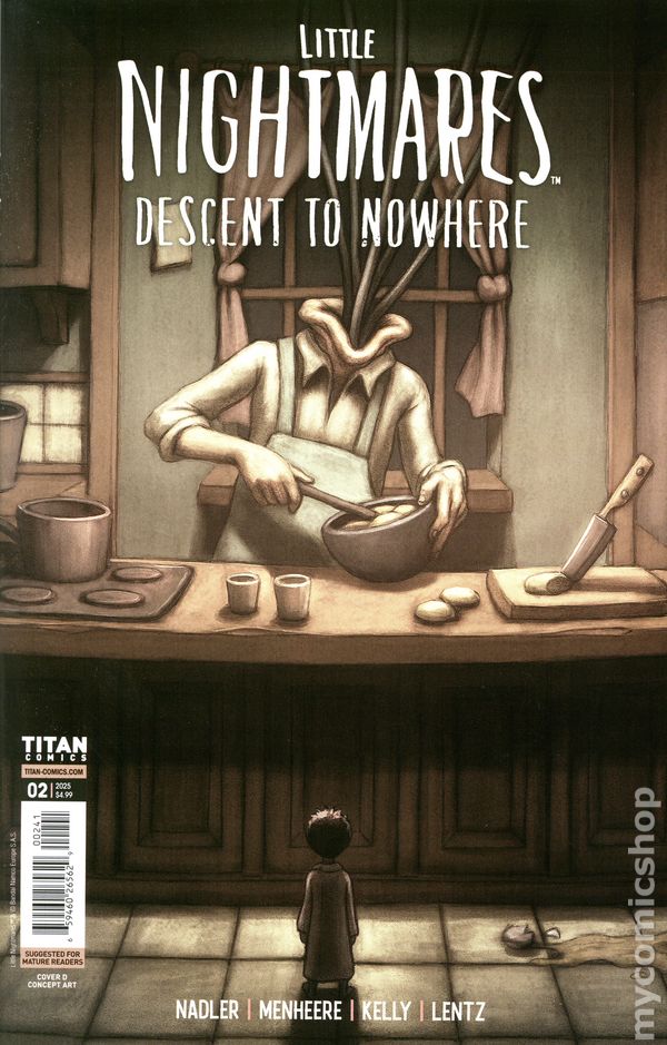 (W) Lonnie Nadler (A) Dennis Menheere, Dearbhla Kelly (CA) Concept Art "Based on the best-selling horror game, Little Nightmares! New comic series launching at the same time as Little Nightmares III game! Against her better judgement, former detective MYRA WAN begins to poke at the shadows which linger in every corner of the Counties, searching for the mysterious missing HUSH. In the COUNTIES PSYCHIATRIC INSTITUTE – the last place the little girl was ever seen – there are more questions than answers. In the NOWHERE, Hush falls deeper into the dungeon without MONO to guide her. But she must survive more than just the JAILER, as something itches just beneath her skin, pulling Hush into more and more danger…. " 32 pages, full color, rated mature. Cover price $4.99.