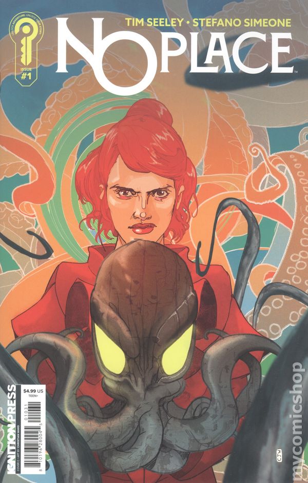 Limited 1 for 5 Retailer Incentive Variant Cover. (W) Tim Seeley (A) Stefano Simeone (CA) Christian Ward Eisner-nominated writer Tim Seeley (Revival, Peacemaker Presents: Vigilante) and knockout artist Stefano Simeone (Radiant Black) invite you to explore the chilling side of childhood imagination in this new dark fantasy adventure!Mariposa Montiel is having a cruel homecoming. As the daughter of immigrants, the outcast teenager is no stranger to scrutiny, but this is another level. Years after vanishing from her Chicago neighborhood, Mari has returned to a traumatized family and a media circus with nothing but a tiger-striped feather and an extraordinary tale of her time away as the champion of a magical jungle land called Mayahuela.Mari is met as a fraud and her story makes her a stranger in her own life until an eccentric, high-tech organization known as N.O. Place emerges from the shadows and welcomes her home. Led by a legend of the Land of Oz, the secret agency has its finger on the pulse of so-called fictional worlds—and as its newest recruit, Mari is now called upon to save our own world from a creeping Lovecraftian nightmare.NO Place unites all-new heroes with horrific and beloved genre icons alike. Retailers who order 5 or more copies of NO Place #1 will also have access to a special incentive cover by artist Christian Ward (Spectregraph; Event Horizon), featuring the first ever cover appearance by N.O. Place Director Dorothy Gale! Cover price $4.99.