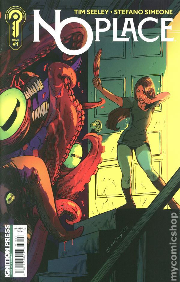 (W) Tim Seeley (A) Stefano Simeone (CA) Stefano Simeone Eisner-nominated writer Tim Seeley (Revival, Peacemaker Presents: Vigilante) and knockout artist Stefano Simeone (Radiant Black) invite you to explore the chilling side of childhood imagination in this new dark fantasy adventure!Mariposa Montiel is having a cruel homecoming. As the daughter of immigrants, the outcast teenager is no stranger to scrutiny, but this is another level. Years after vanishing from her Chicago neighborhood, Mari has returned to a traumatized family and a media circus with nothing but a tiger-striped feather and an extraordinary tale of her time away as the champion of a magical jungle land called Mayahuela.Mari is met as a fraud and her story makes her a stranger in her own life until an eccentric, high-tech organization known as N.O. Place emerges from the shadows and welcomes her home. Led by a legend of the Land of Oz, the secret agency has its finger on the pulse of so-called fictional worlds—and as its newest recruit, Mari is now called upon to save our own world from a creeping Lovecraftian nightmare.NO Place unites all-new heroes with horrific and beloved genre icons alike, featuring main covers by series artist Stefano Simeone! 32 pages, full color, rated teen+. Cover price $4.99.