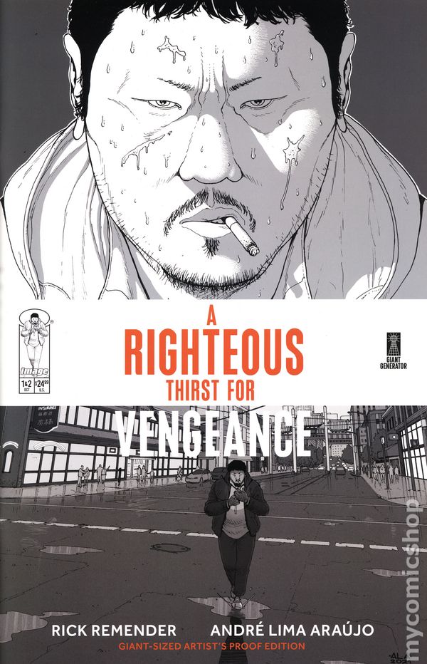 (W) Rick Remender (A) Andre Lima Araujo (CA) Andre Lima Araujo Presenting issues #1 and #2 of the hit series A RIGHTEOUS THIRST FOR VENGEANCE by RICK REMENDER and ANDRÉ LIMA ARAÚJO in the ultimate artist's proof treatment, showcasing LIMA ARAÚJOs pages in their original inks in stunning 11"x17" format. When an unassuming man stumbles upon a dark-web contract assassins vicious plot to kill an innocent target, he turns himself into one. The Professional meets Road to Perdition in this story of a familys unlikely guardian being hunted by rich and powerful men who are used to getting away with everything. 64 pages, black and white, rated M. Cover price $24.99.