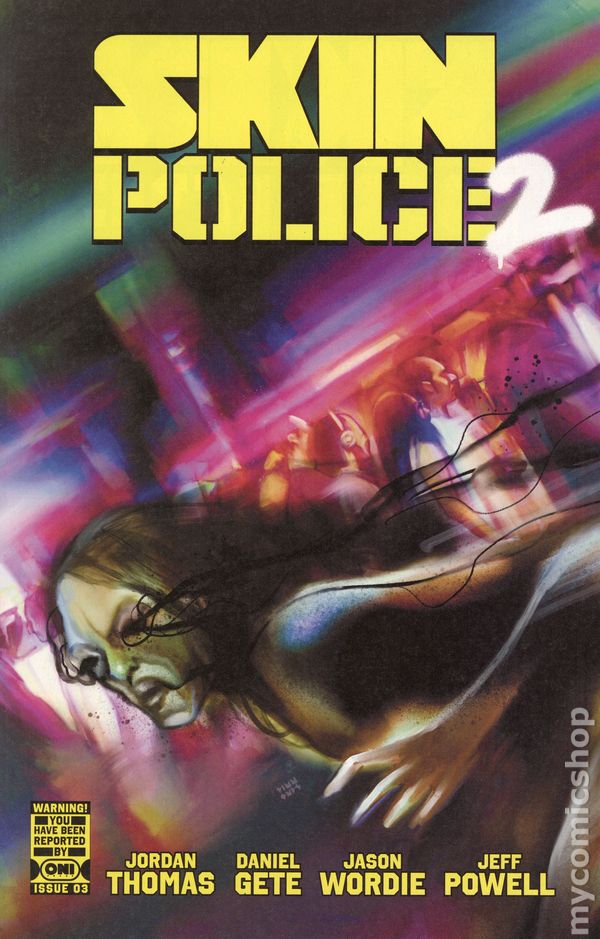 Limited 1 for 10 Retailer Incentive Variant Cover. (W) Jordan Thomas (A) Daniel Gete (CA) Martin Simmonds There are bombshells . . . and then there is THIS issue! The entire SKIN POLICE saga has led to this world-shaking turning point!Secrets explode and loyalties shatter as Agent Eckis of the Duplicate Identification and Capture Division—aka the Skin Police—finally comes face-to-face with the one man he’s been hunting since day one: Noxxon, the enigmatic leader of the Dupe Resistance.After months of brutal clashes between Skin Police and Dupe resistance forces—and with nothing but clone corpses and contradictions to show for it—Eckis has had enough. Disillusioned by dead-end intel and the shifting agenda of his superiors, he agrees to an off-the-grid meeting with Noxxon. The truth they uncover will rewrite everything Eckis believes about the Dupe program, the Skin Police, and his own existence.Jordan Thomas (Mugshots) and Daniel Gete (Biker Mice from Mars) rip the curtain back on the darkest corners of identity, rebellion, and control in the issue that changes everything. And trust us—that last page is one hell of a doozy! Cover price $4.99.