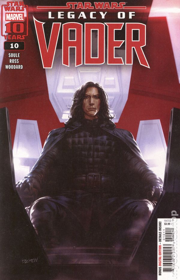 (W) Charles Soule (A) Luke Ross (CA) Derrick Chew DARK VISIONS IN THE DEPTHS OF VADER'S CASTLE! KYLO REN goes on a quest through unseen caverns within VADER'S CASTLE! The young tyrant comes face-to-face with grotesque visions of his past! Can Kylo make his way out of the depths of darkness with his sanity intact?! 32 pages, full color, rated T. Cover price $3.99.