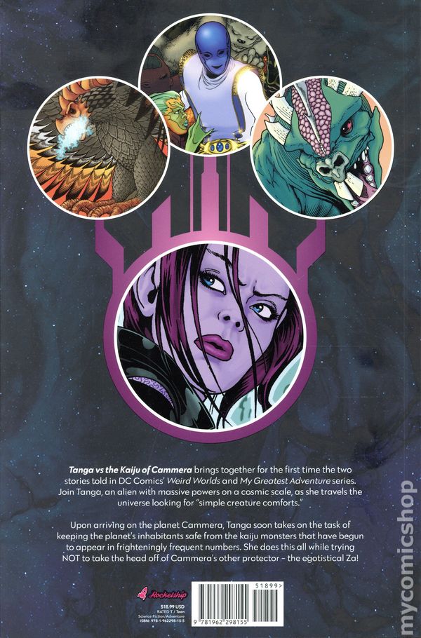 1st printing. Story and art by Kevin Maguire. Wandering space goddess Tanga receives a warm welcome on a planet with a BIG problem. Will she help or somehow make matters worse? Superstar writer/artist KEVIN MAGUIRE takes you to the farthest (and craziest) reaches of outer space with the adventures of TANGA, his creator-owned hero! TANGA VS. THE KAIJU OF CAMMERA brings together for the first time the two stories told in DC Comics WEIRD WORLDS and MY GREATEST ADVENTURE series. Join Tanga, an alien with massive powers on a cosmic scale, as she travels the universe looking for simple creature comforts. Upon arriving on the planet Cammera, Tanga soon takes on the task of keeping the planets inhabitants safe from the kaiju monsters that have begun to appear in frighteningly frequent numbers. She does this all while trying NOT to take the head off of Cammeras other protector – the egotistical Za! Softcover, 140 pages, full color. Teen+ Cover price $18.99.