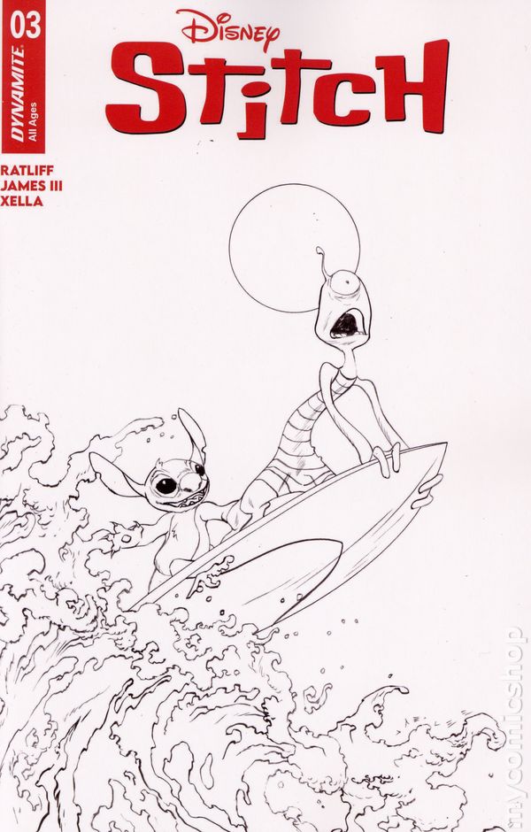 $7 Stitch #3 2025 Jae Lee 1:10 Variant Dynamite EB113 $9 Stitch (Dynamite) #3E VF/NM; Dynamite | 1:10 Variant B&W Disney All Ages Lilo & Clicking on the links to the eBay listings shown above and then making a purchase may result in MyComicShop earning a commission from the eBay Partner Network.