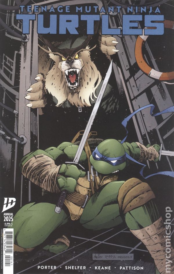 Limited 1 for 25 Retailer Incentive Variant Cover. (W) Kenny Porter (A) Maria Keane; Michael Shelfer (CA) Michael Shelfer After a year apart and a brutal war fought against D.A. Hale and his Foot Patrol, the four Teenage Mutant Ninja Turtles are back together and finally reforming their bonds. But…there are shadows hanging over them from their year apart, and Donnie is still struggling to get back on his feet. Leonardo, Michelangelo, and Raphael will need to pull together, train, and share details of their lost year in order to help their fourth brother get his second wind as they reflect on the past and begin to reforge their brotherly bonds. From the team of Kenny Porter (Superboy: Man of Tomorrow, DC Mech) and Michael Shelfer (Action Comics, NYX)! Cover price $5.99.