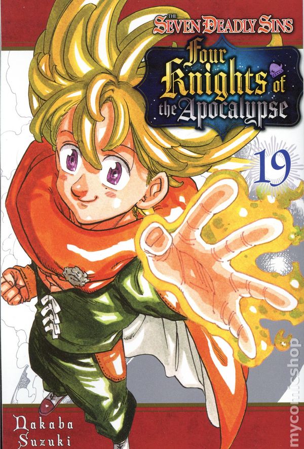 Volume 19 - 1st printing. Story and art by Nakaba Suzuki. Translated by Kevin Steinach. Return to the magical and thrilling world of Britannia with this new adventure from the creator of The Seven Deadly Sins, the manga that inspired the No. 1 hit Netflix Original Anime! Percival has always lived with his grandfather on the idyllic, remote God's Finger. And though Percival loves the simple life, he longs for adventure. That is, until adventure comes knocking at his door, tearing away everything he's ever known and leaving him alone in the world. Now Percival has no choice but to go out into the world and see what it holds... after all, it's his destiny! Four Knights of the Apocalypse is a new story in the world of The Seven Deadly Sins, but can be enjoyed totally on its own! Softcover, 5-in. x 7-in., 192 pages, B&W. Teen (13+) Cover price $10.99.