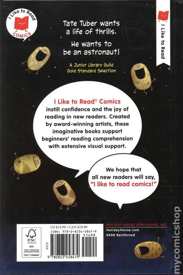 1st printing. Story and art by Michael Slack. A funny sci fi comic thats just right for second and third graders! Tate Tuber has always known he was destined for greatness. A couch potato? Not Tate—hes going to be an astronaut! So when Tate sees his chance to join space training, he literally jumps at the chance. But on his first mission, Tate learns that his role doesnt include finding aliens or stopping asteroids. The human astronauts want to use Tate in a space farming experiment. How disappointing! But when the space station loses power and begins hurtling back towards earth, its up to Tate to save the day with his ability to conduct electricity! Potato power! In the back of the book are science facts about how potatoes really do conduct electricity, growing veggies in space, and more! I Like to Read Comics are perfect for kids who are challenged by or unengaged in reading, kids who love art, and the growing number of young comics fans. Filled with eye-catching art, humor, and terrific stories, these comics provide unique reading experiences for growing minds. I Like to Read Comics, like their award-winning I Like to Read counterpart, are created by celebrated artists and support reading comprehension to transform children into lifelong readers. We hope that all new readers will say, I like to read comics! Hardcover, 6-in. x 9-in., 40 pages, full color. All Ages Cover price $14.99.
