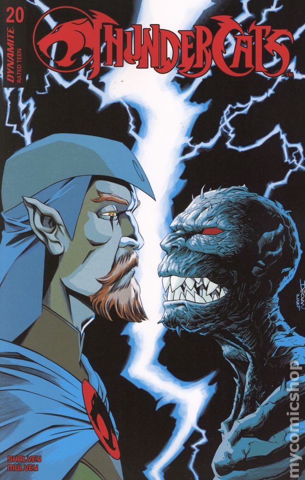 Limited 1 for 20 Retailer Incentive Variant Cover. (W) Declan Shalvey (A) Joe Mulvey (CA) Declan Shalvey Jaga and Mumm-Ra face off and not for the first time! Witness the enduring contest between the two iron-willed adversaries down through the ages, from their earliest days to the current battle for the future of Third Earth! Enthusiastic exohistorians DECLAN SHALVEY and JOE MULVEY add an informative new chapter to their archive with ThunderCats #20 illuminated by eye-catching covers from MOSS, SHALVEY, LUCIO PARRILLO, ALFREDO CARDONA, DANIEL SCALISI, and MANIX! 32 pages, full color, rated teen. Cover price $4.99.