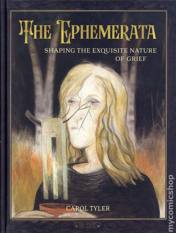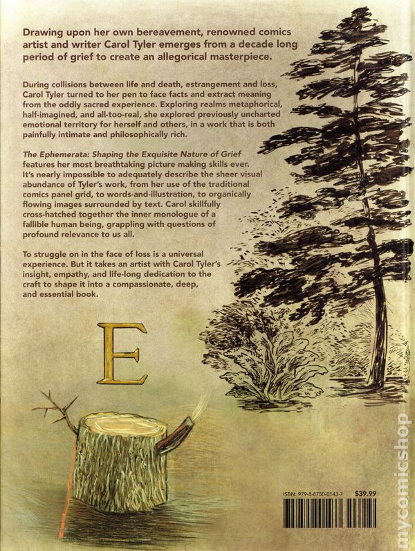 1st printing. Story and art by Carol Tyler. During collisions between life and death, estrangement and loss, Carol Tyler turned to her pen to face facts and extract meaning from the oddly sacred experience. Exploring realms metaphorical, half-imagined, and all-too-real, she explored previously uncharted emotional territory for herself and others, in a work that is both painfully intimate and philosophically rich.An artistic advancement nearly forty years into Tylers comics-making career, The Ephemerata features Tylers most breathtaking picture making ever — fine, dense brush lines complemented with occasional color washes or highlights — and formally stunning cartooning. Combining art and text in multiple ways — in the traditional comics panel grid, as words-and-illustration, as organically flowing images surrounded by floating text — she depicts the inner monologue of a fallible human being grappling with questions of profound relevance. Tylers memoirist skills also rise to the fore, excavating and colliding scenes from her history, delineating with sensitive intuition ways in which the inevitability of grief is built into our lives and our loves. To struggle in the face of loss is a universal experience. To turn it into this compassionate, deep and beautiful book takes a true artist. Hardcover, 9-in. x 12-in., 232 pages, B&W. Mature Readers Cover price $39.99.