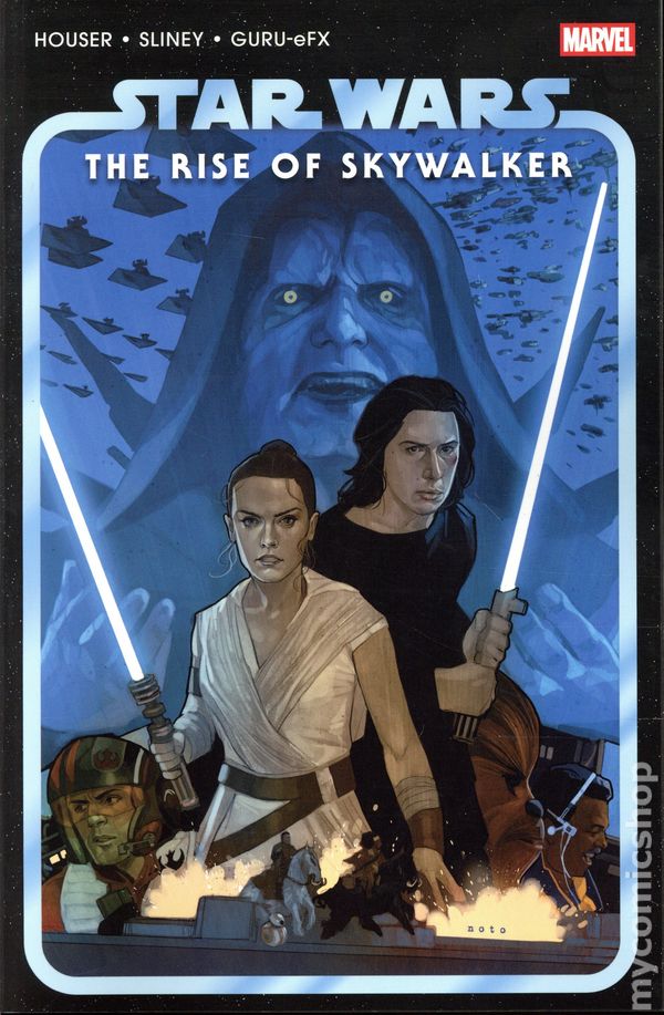 1st printing. Collects Star Wars: The Rise of Skywalker Adaptation (2025 Marvel) #1-5. Written by Jody Houser. Art by Will Sliney. Cover by Phil Noto. The official comic-book adaptation of the climactic film of the Skywalker Saga! As the Resistance struggles against the First Orders dominance, Poe Dameron discovers an unthinkable threat on the horizon — and the final battle for the fate of the galaxy begins! Rey must find a way to the hidden Sith hideout, putting her on a collision course with Kylo Ren. Their confrontation will be explosive! Meanwhile, Chewbacca is captured — and Poe Dameron seeks aid from a mysterious figure from his past! But with only hours to act, will our heroes avert the devastation of the Final Order? Softcover, 128 pages, full color. Rated T Cover price $17.99.