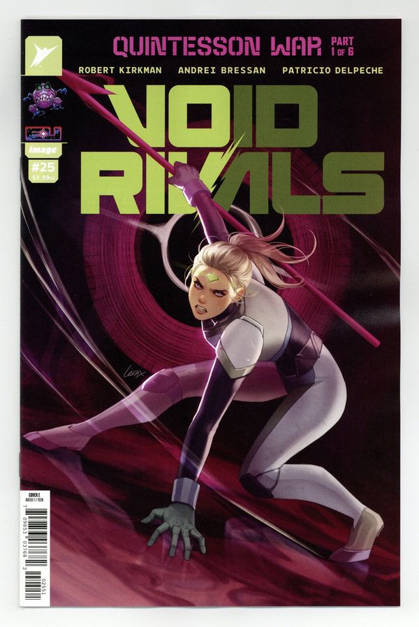 $17.00Limited 1 for 50 Retailer Incentive Variant Cover.(W) Robert Kirkman (A) Andrei Bressan, Patricio Delpeche (CA) Leirix Li WAR COMES TO THE SACRED RING! The QUINTESSON WAR begins! No one could prepare for an all out assault from the Quintessons! Darak and Solila must lead their people in the deadliest war they’ve ever faced! When the dust is settled the status quo of Void Rivals will be forever changed! Cover price $3.99.