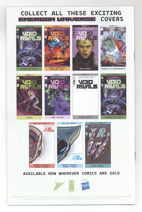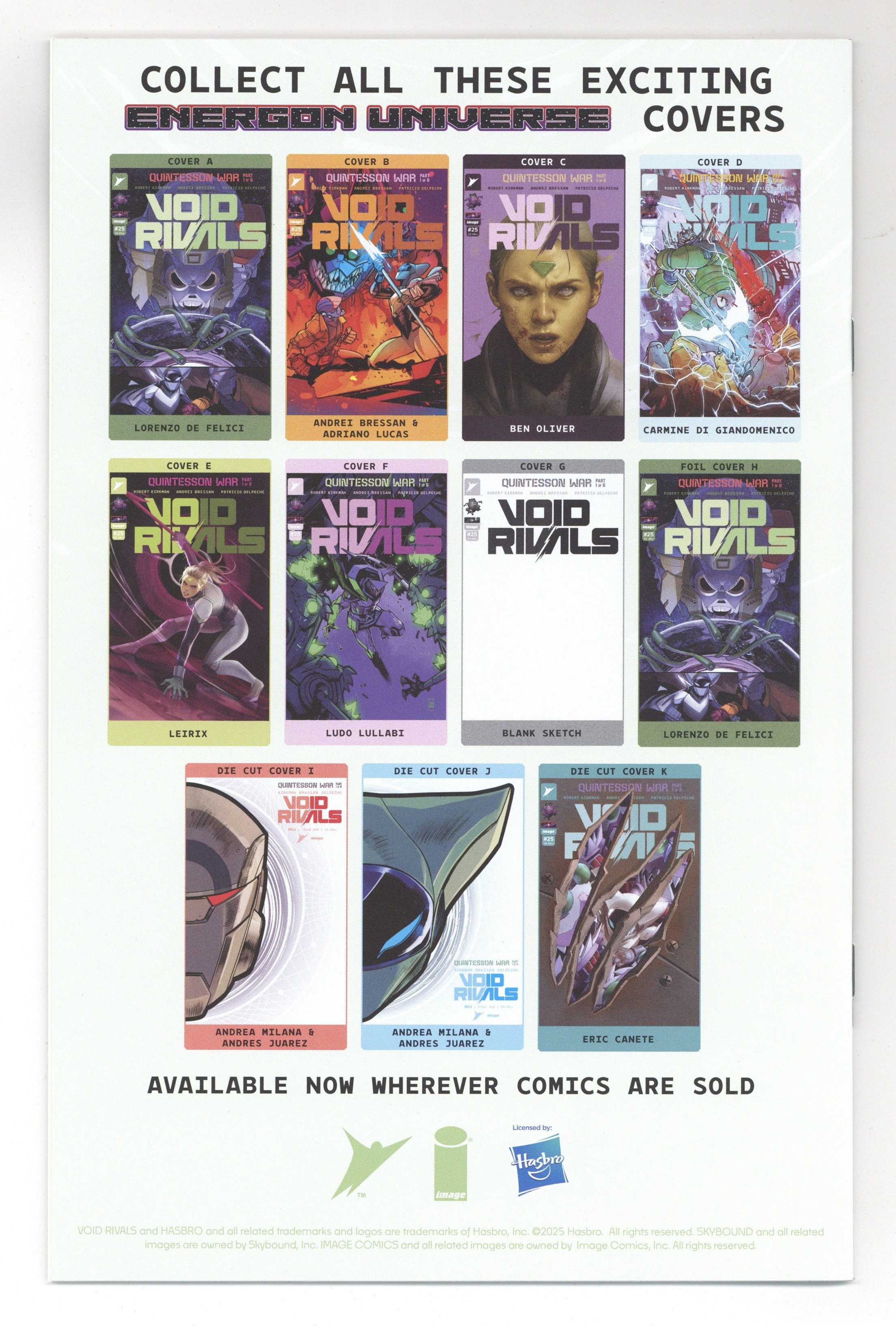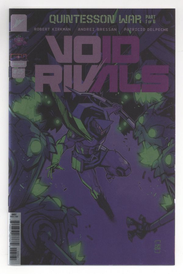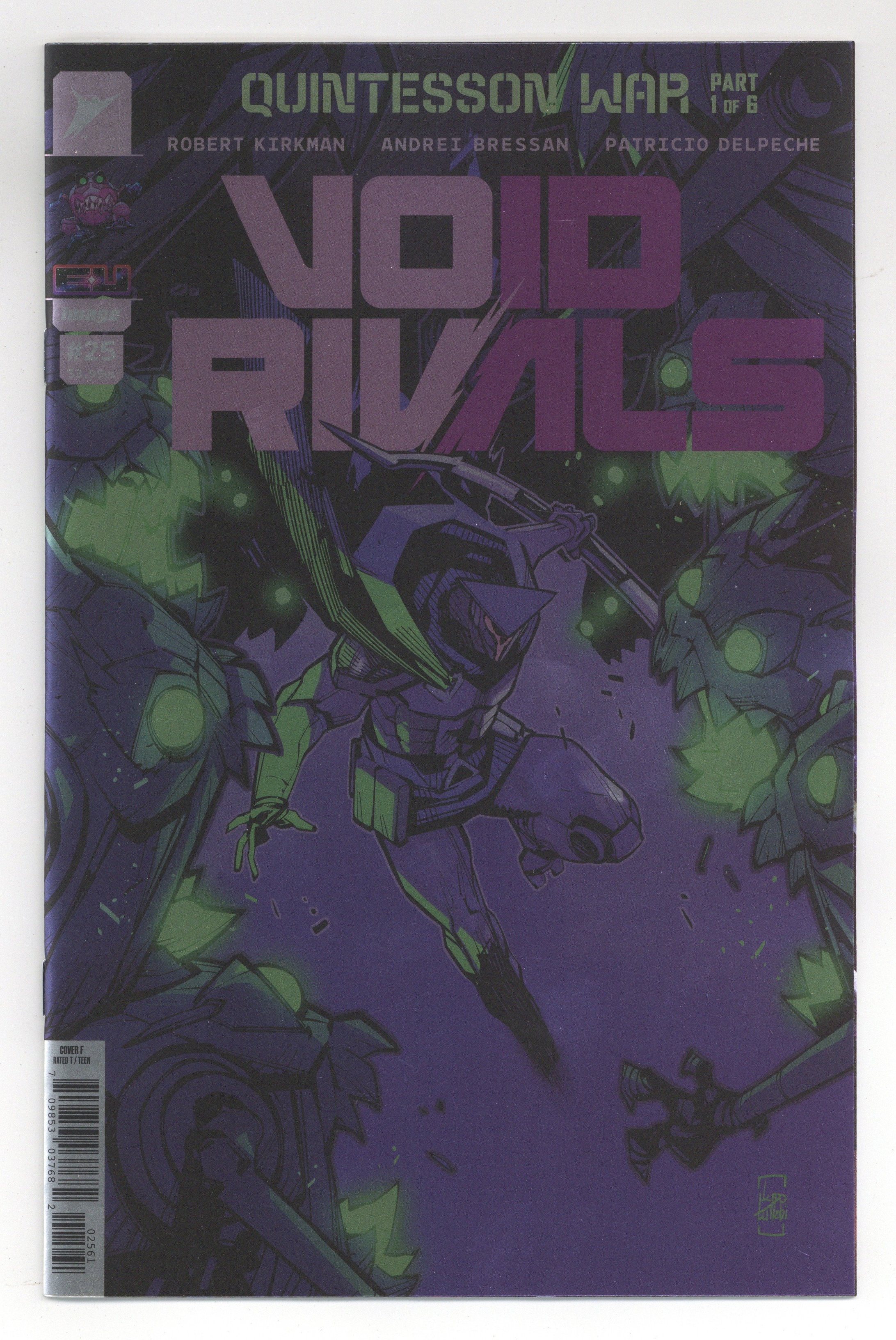 $50.00Limited 1 for 100 Retailer Incentive Variant Cover.(W) Robert Kirkman (A) Andrei Bressan, Patricio Delpeche (CA) Ludo Lullabi WAR COMES TO THE SACRED RING! The QUINTESSON WAR begins! No one could prepare for an all out assault from the Quintessons! Darak and Solila must lead their people in the deadliest war they’ve ever faced! When the dust is settled the status quo of Void Rivals will be forever changed! Cover price $3.99.