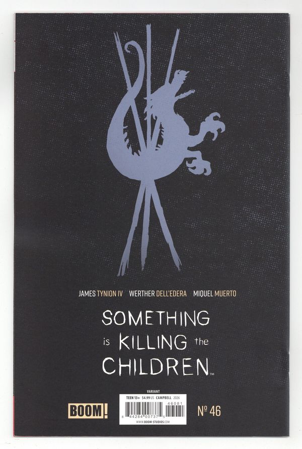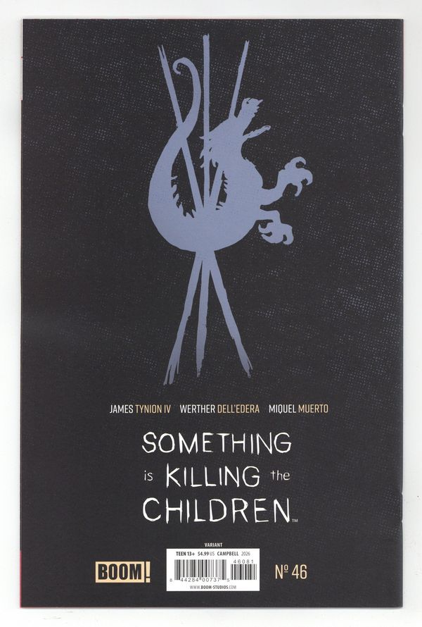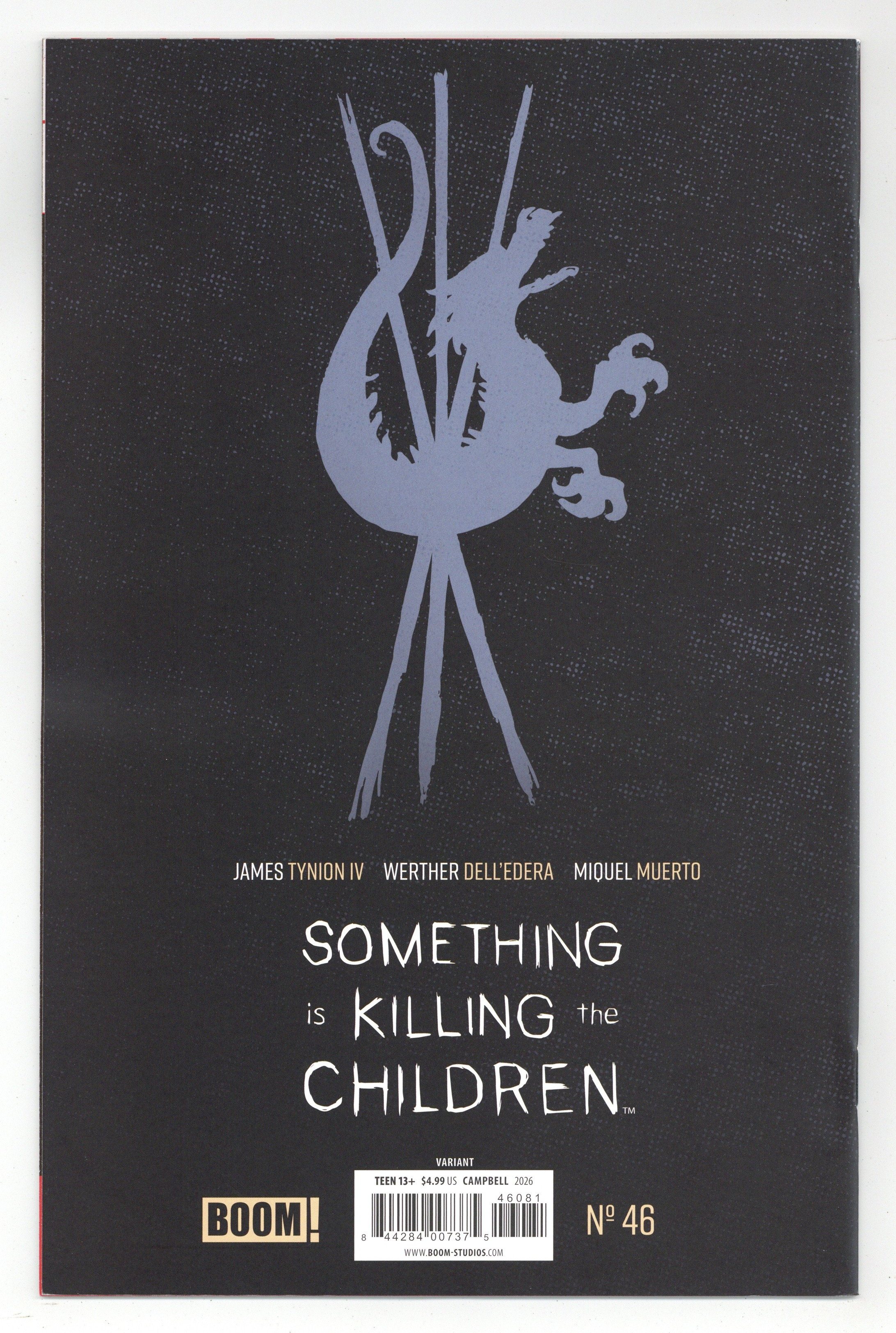 Published Apr 2026 by Boom Studios.$44.00Limited 1 for 75 Retailer Incentive Variant Cover. Written by James Tynion IV. Art by Werther Dell'Edera. Cover by Aaron Campbell. Dive deeper into Erica Slaughters past and learn how she earned her teeth as a Black Mask! Jessica Slaughter continues to unravel, even as Erica zeroes in on the threat. Erica will need to take matters into her own hands at Valmont Mountain Lodge if she wants to eliminate the monster… But will she risk her mentors safety to do so? 32 pages, 13+, full color Cover price $4.99.