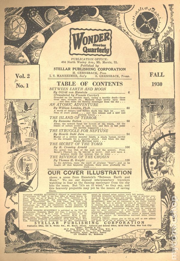 Fall 1930. Stories by Otfrid von Hanstein, Henrik Dahl Juve, William Lemkin, Ransome Sutton, R. Crossley Arnold, and and Thomas H. Knight. Edited by Hugo Gernsback. 8.5-in. x 11.75-in.; black and white with color cover; 148 newsprint pages. Cover price $0.50.