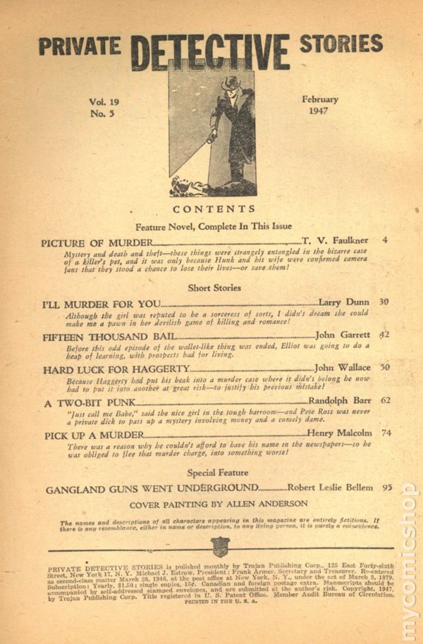 $79 Private Detective Stories Pulp Aug 1950 VG (1937-1950 Trojan Publishing) $99 Private Detective Stories Pulp v.22 #5, Aug. 1950 VG Clicking on the links to the eBay listings shown above and then making a purchase may result in MyComicShop earning a commission from the eBay Partner Network.