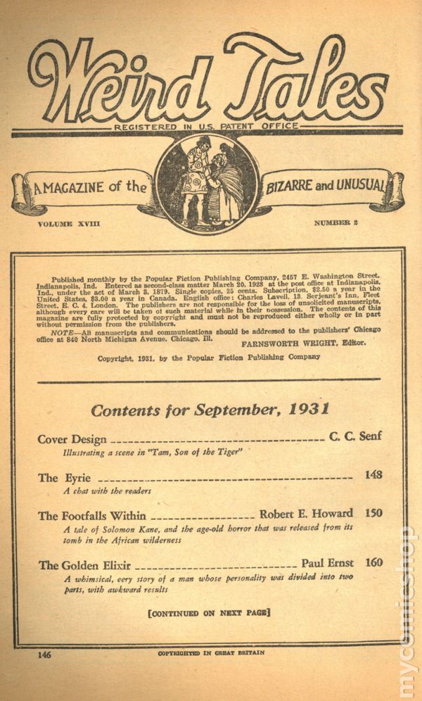 Published Sep 1928 by Weird Tales.$520.00