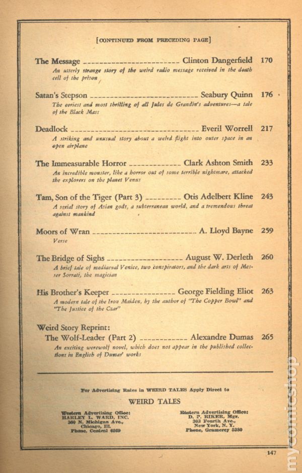 Published Dec 1927 by Weird Tales.$210.00