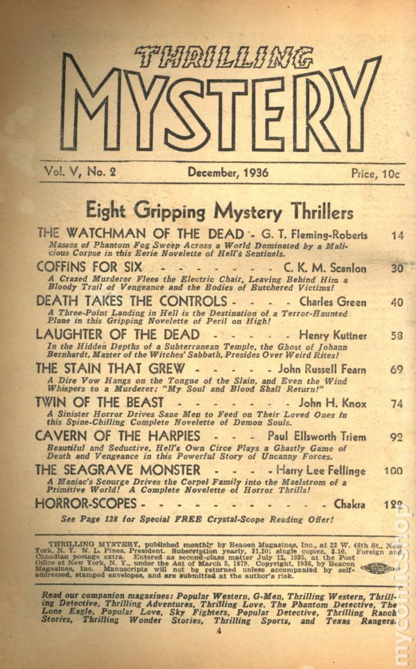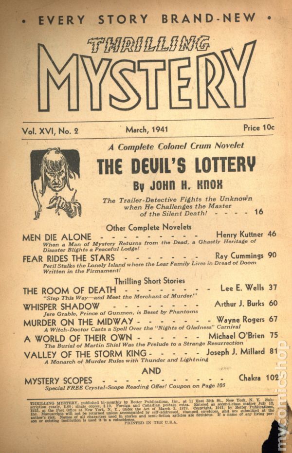 $450 Thrilling Mystery 1941 September. Pulp Clicking on the links to the eBay listings shown above and then making a purchase may result in MyComicShop earning a commission from the eBay Partner Network.